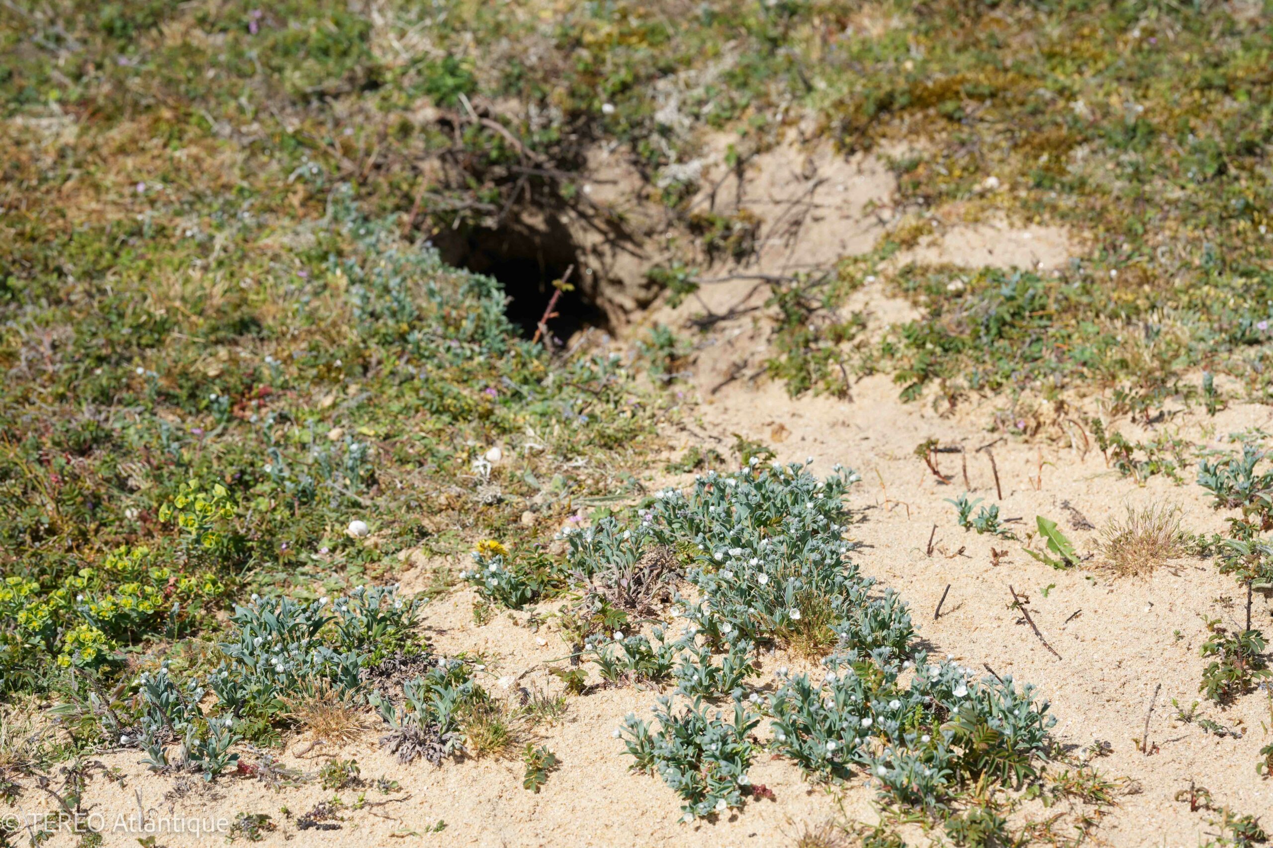 Il est intéressant de faire une parenthèse pour une espèce qui semble a priori anodine mais qui joue un rôle fondamental dans l’écosystème dunaire : le lapin de garenne. Il s’épanouit dans les dunes grises où il forme d’importantes garennes. Son rôle est de plusieurs niveaux. Tout d’abord, la gestion de la végétation ; son appétit permet de maintenir les milieux ouverts en empêchant le développement des ligneux. Le creusement des terriers permet également de maintenir des milieux pionniers indispensables au développement de certaines espèces dont le rare cynoglosse des dunes. A ce titre, le lapin de garenne est utilisé par les gestionnaires (introduction de lapin, aménagements de garenne,…) dans des projets de restauration de dunes. Le rôle des terriers ne s’arrête pas là. Ils servent de refuge pour la faune, structurent et augmentent la perméabilité du sol et par conséquent renforcent la résistance des dunes face à l’érosion. C’est donc un allié incontournable dans la préservation de ces habitats remarquables.