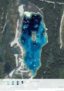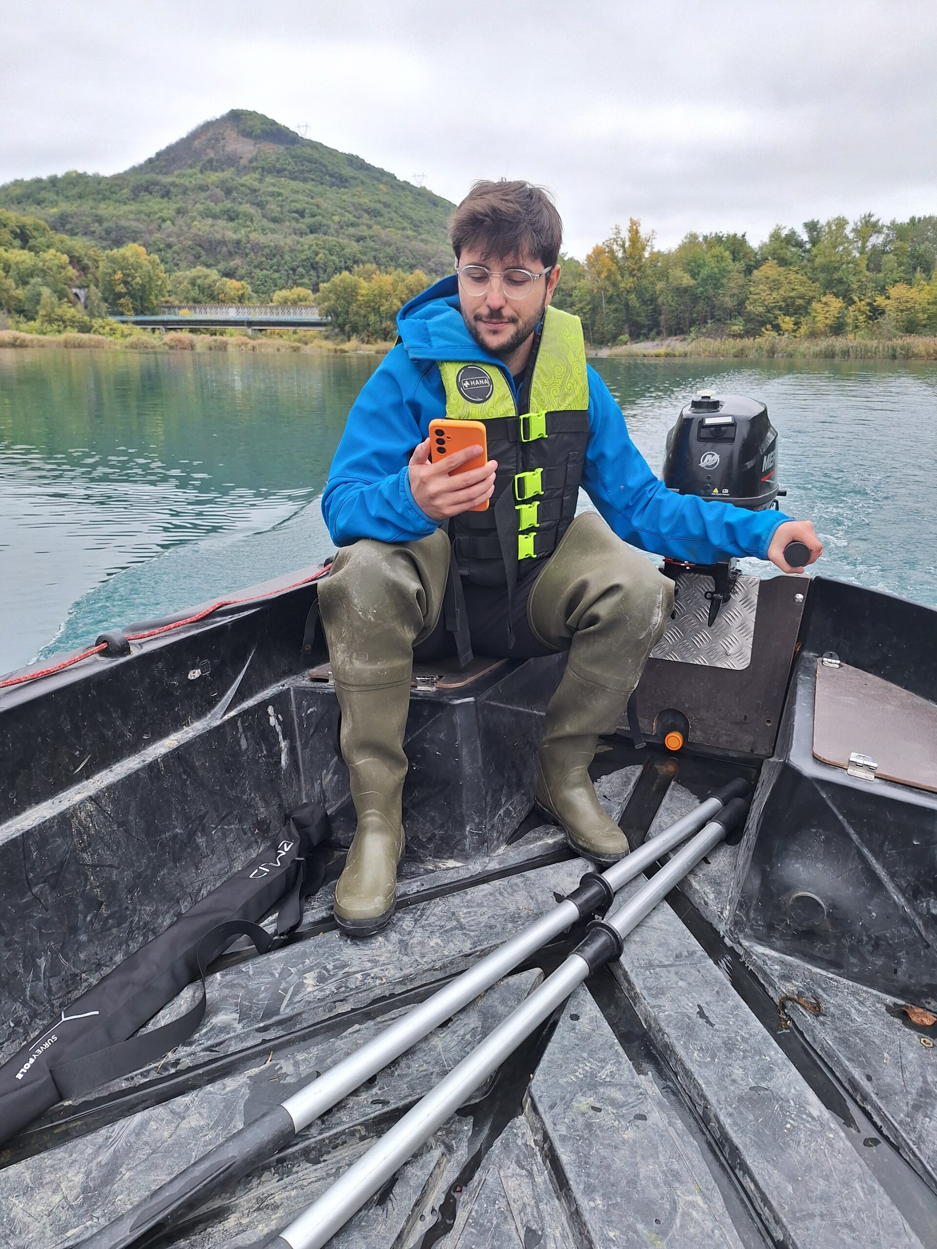 La réalisation des relevés bathymétriques et de la cartographie des habitats lacustres a été réalisée en une journée à l’aide d’une embarcation légère, d’un échosondeur GPS relié à nos smartphones et d’un GPS RTK.