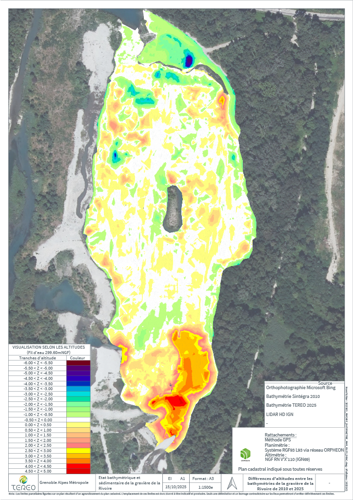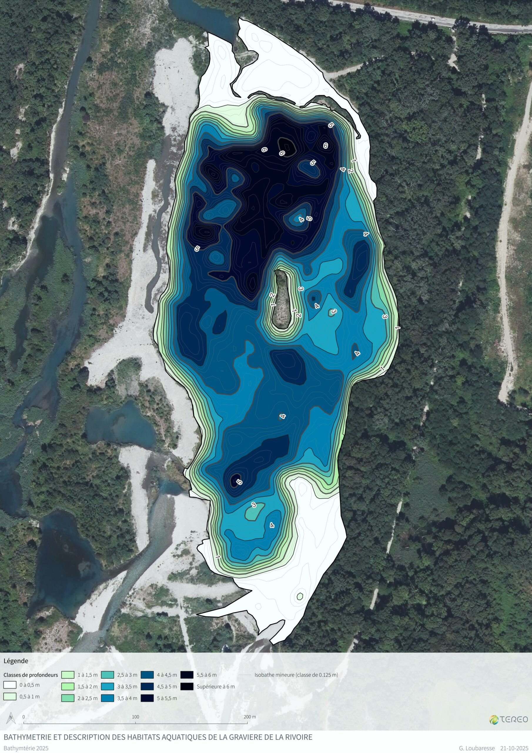 Dans un souci d’évaluation des travaux de restauration menés en 2023-24 vis-à-vis des états initiaux réalisés en 2010 (bathymétrie) et 2020 (habitats piscicoles lacustres) Grenoble Alpes Métropole a sollicité notre bureau pour réaliser une campagne de mesures en 2025 portant sur la bathymétrie et une cartographie des habitats piscicoles lacustres.